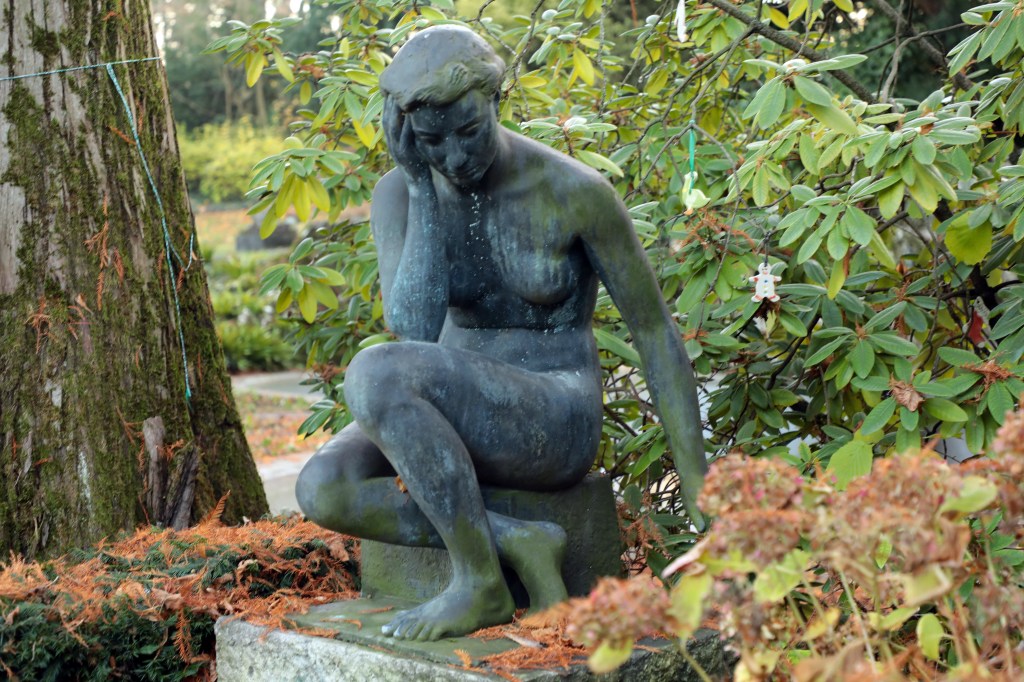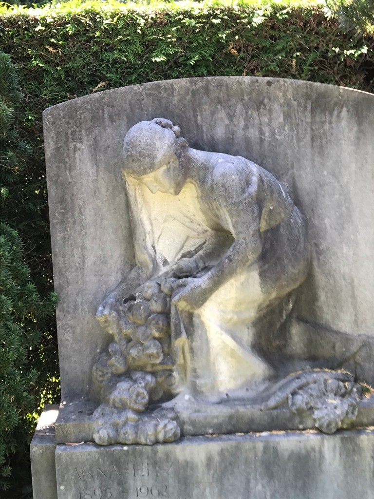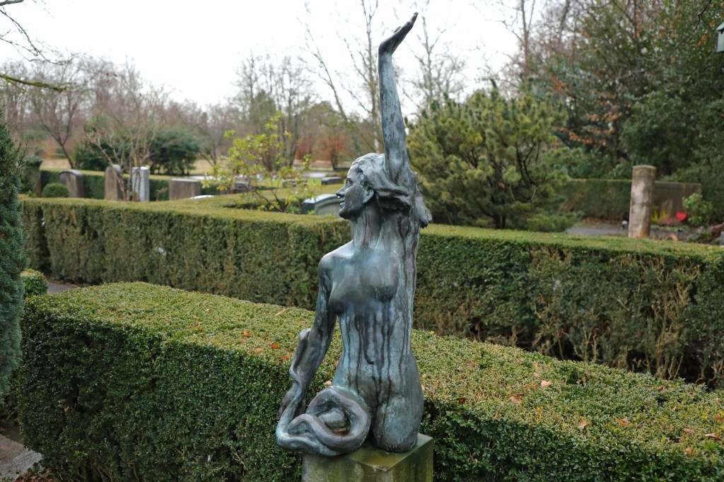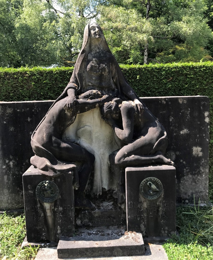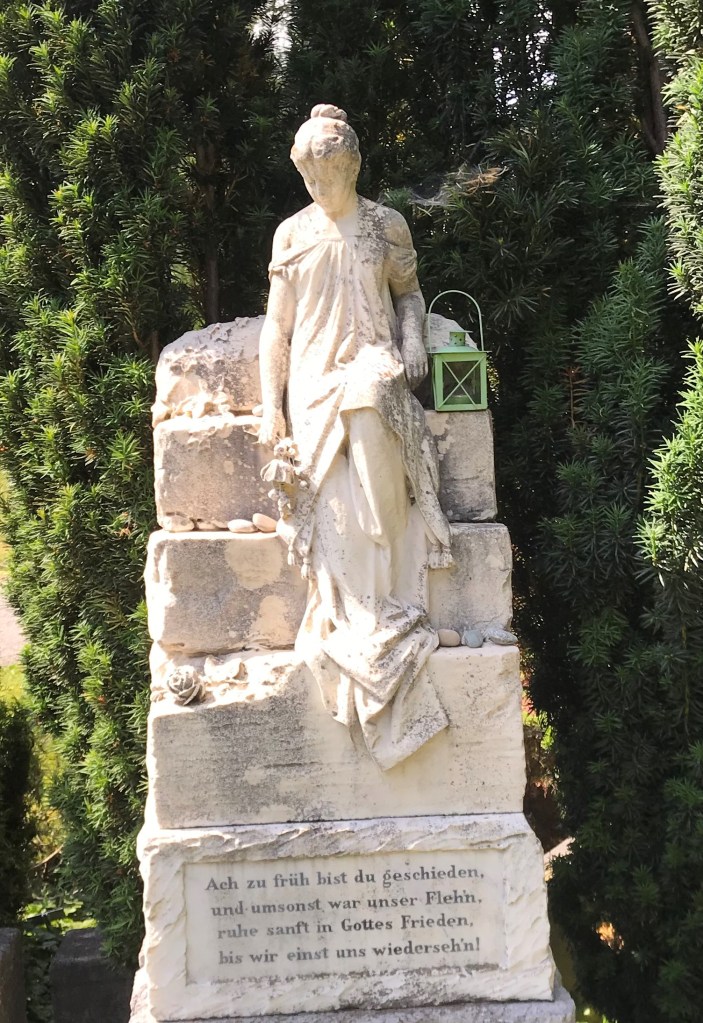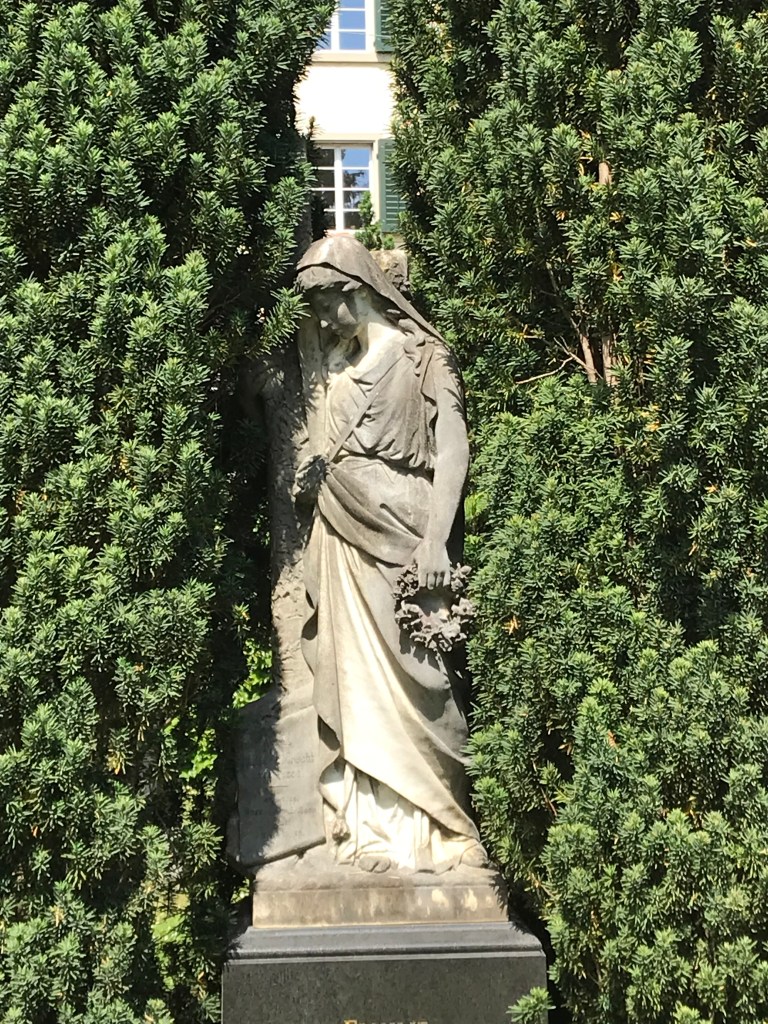 Auch wenn wir in Zeiten der Pandemie bei Museen und Ausstellungen vor geschlossenen Türen stehen, gibt es immer noch Kulturorte, die geöffnet sind, die Friedhöfe. Beim Schlendern über Stadtfriedhöfe in der Deutschschweiz sah ich viele Skulpturen als Grabmale. Nun ist ungefähr die Hälfte der Menschheit männlichen Geschlechtes und deshalb sicherlich auch die Toten. Es gibt ausser der wichtigsten männlichen Figur im Christentum noch unzählige Heilige, die über den Gräbern wachen könnten. Zumal in den Zeiten, aus denen die meisten dieser Skulpturen stammen, das Patriarchat noch kaum in Frage stand. Deshalb war ich umso erstaunter, dass Grabsteine grösstenteils Frauengestalten zieren.