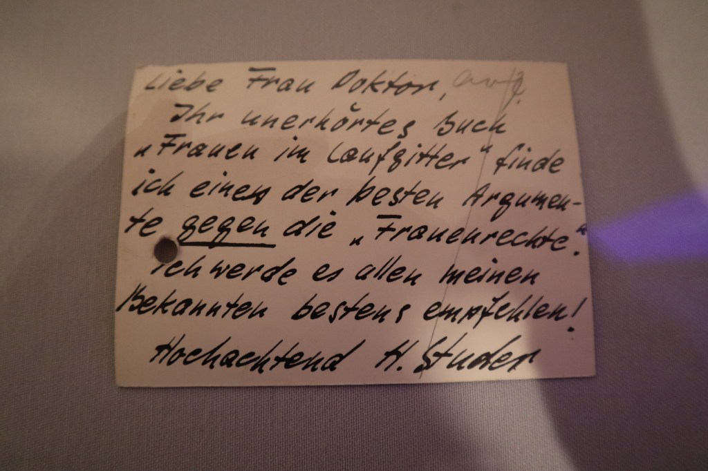 Ein Besuch der Ausstellung im Strauhof ist sehr empfehlenswert, zumal von ihrer Tochter ein zusätzliches, unpubliziertes Kapitel ihres Buches entdeckt wurde. Die Manuskriptseiten über Kleidung und Geschlecht.