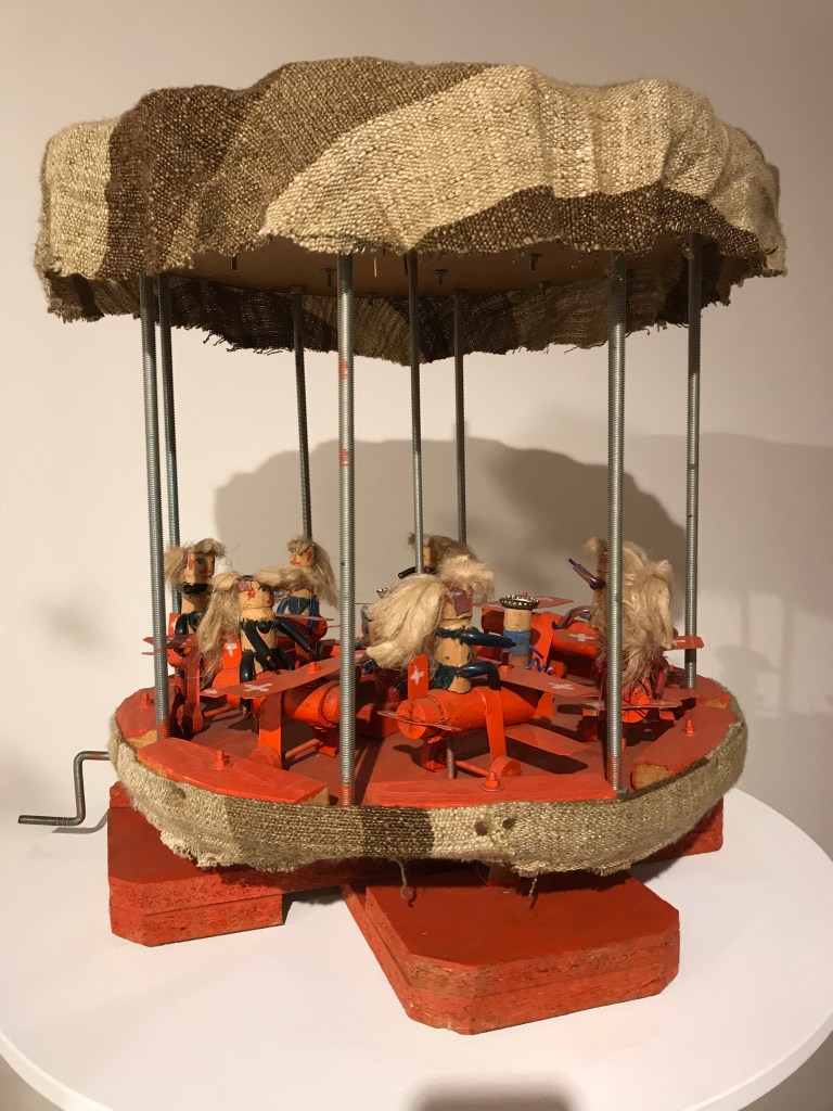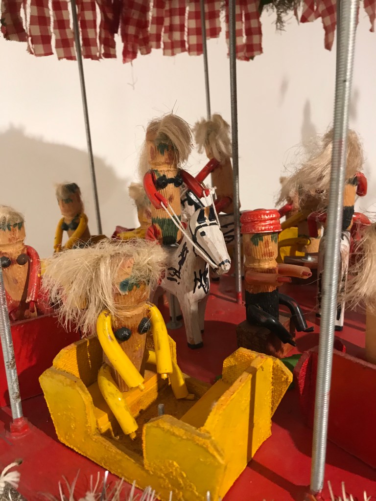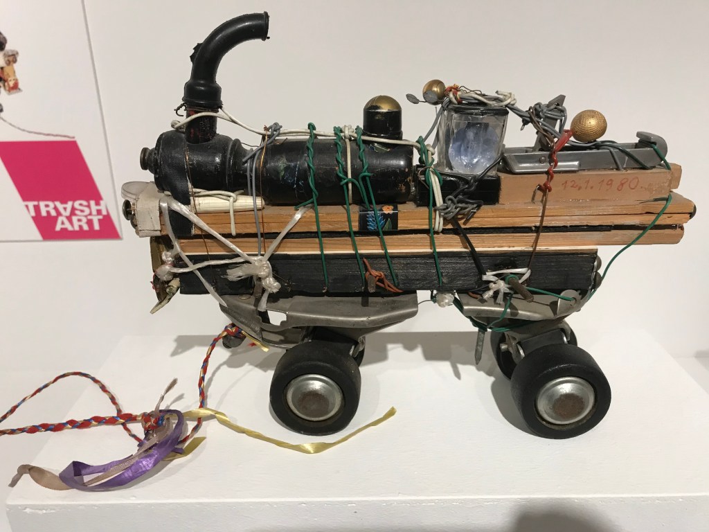 Bei L’ART BRUT oder auch OUTSIDER ART genannt, geht es um Werke von gesellschaftlich unangepassten Menschen, die auf ihre eigene autodidaktische Weise ihre Kunst entwickeln abseits des etablierten und akademischen Mainstreams. Im normalen Kunstbetrieb wird durchaus auch mit Wegwerfmaterialien experimentiert, aber dann oft mit einer gesellschaftskritischen Aussage. In der naiven Kunst der Outsider Art gehören alltägliche Fundstücke quasi zur Grundausrüstung. Dinge und Resten des Alltags verwerten sie, weil meistens nichts anderes zur Verfügung steht.