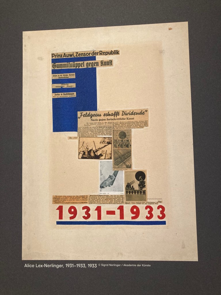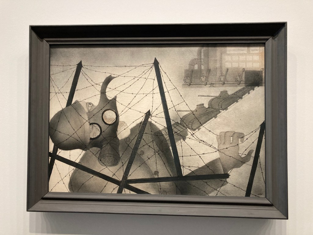 Ganz neu entdeckt habe ich ALICE LEX-NERLINGER (1893-1975) mit ihrem «Feldgrau schafft Dividende». Sie gehörte zur Avantgarde der Weimarer Republik und war proletarisch-revolutionärer Gesinnung. Sie wollte mit ihrer politischen Kunst den Klassenkampf unterstützen. In diesem Werk verbindet sie scharfe Kriegskritik mit der Anprangerung des Kapitalismus. Die Waffenindustrie schlägt Profit aus dem Tod unzähliger Soldaten.
