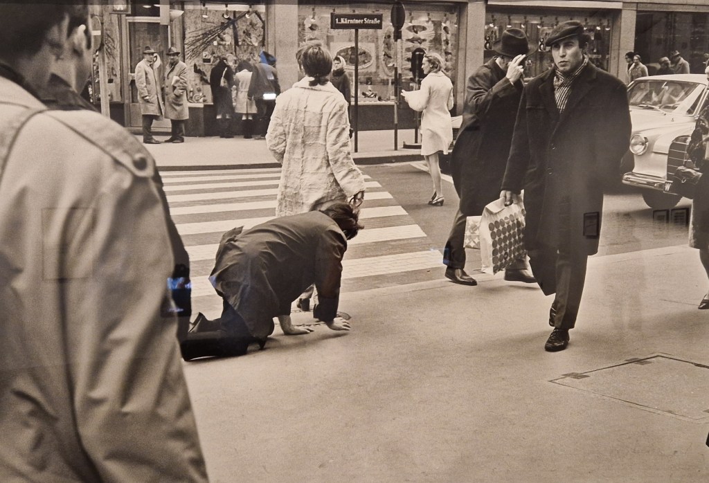 Von der österreichischen Künstlerin VALIE EXPORT waren mir vor allem ihre aufsehenerregenden Performances wie Hundigkeit und Tapp und Tastkino noch in Erinnerung. Während der ersteren führte sie ihren Freund, den Künstler Peter Weibel, an einer Hundeleine auf allen Vieren kriechend durch die Stadt Wien. Damit wollte sie die Umkehrung der aktuellen Machtverhältnisse aufzeigen.