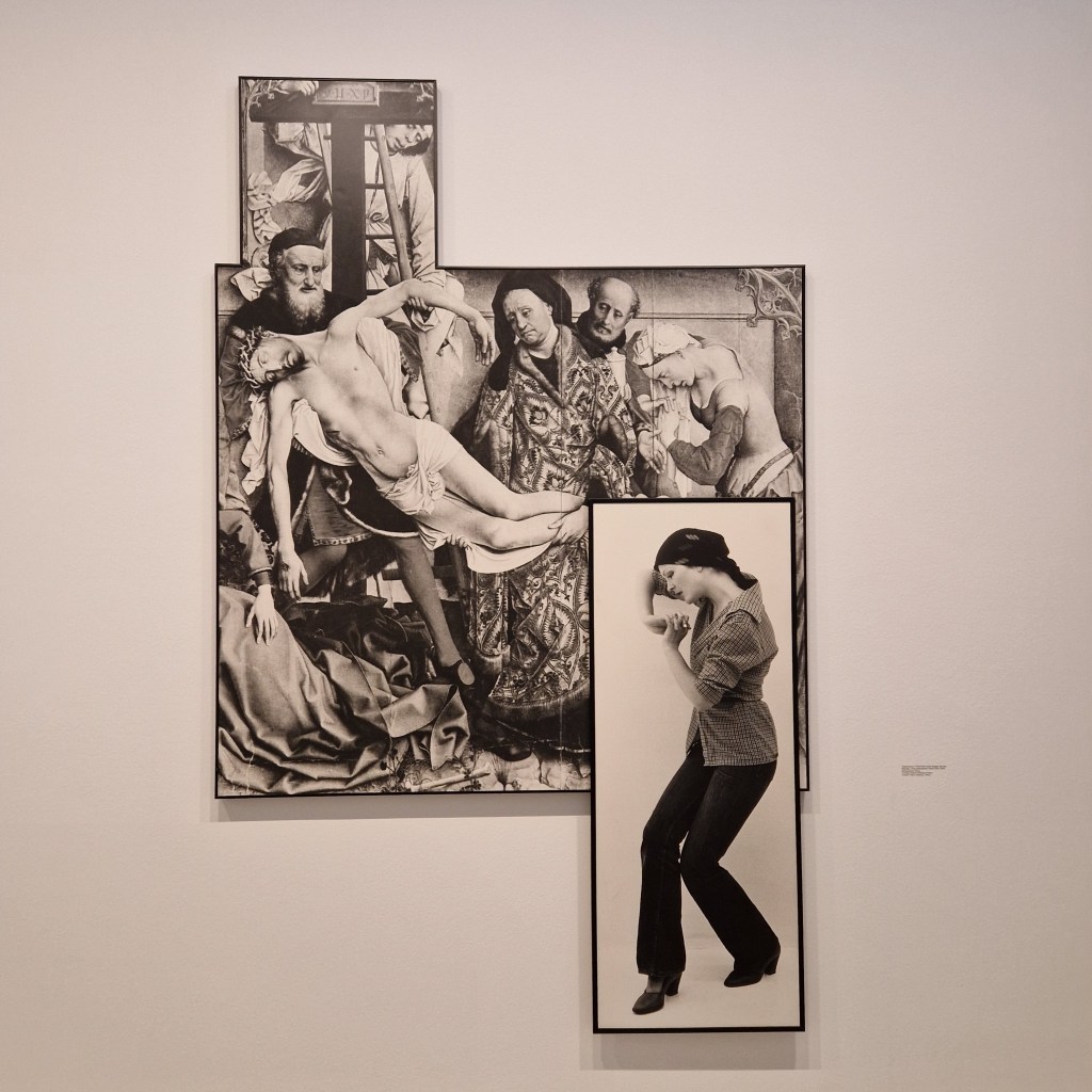 Anhand der Nachstellungen aus dem Jahr 1976 reinszeniert sie weiblich konnotierte Posen aus klassischen Gemälden von Sandro Botticelli und Rogier van der Weyden. Durch die ungleichen Wiederholungen werden uns die Stereotypien klar.