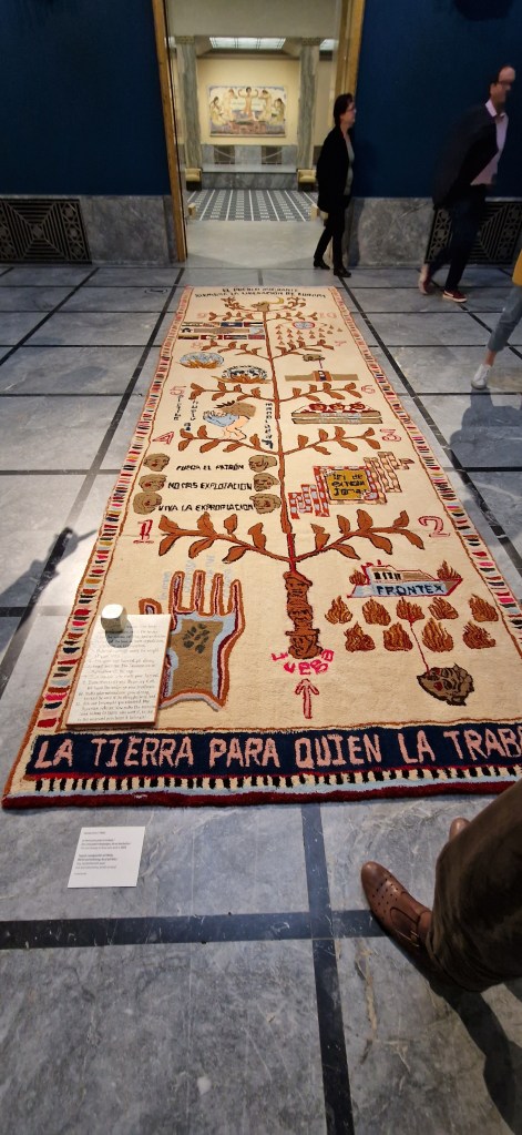 Auch die peruanische Künstlerin Daniela Ortiz, die sich mit Rassismusfragen und kolonialer Ausbeutung auseinandersetzt, ist vertreten. Sie hinterfragt das kapitalistische System und hegemoniale Machtstrukturen.